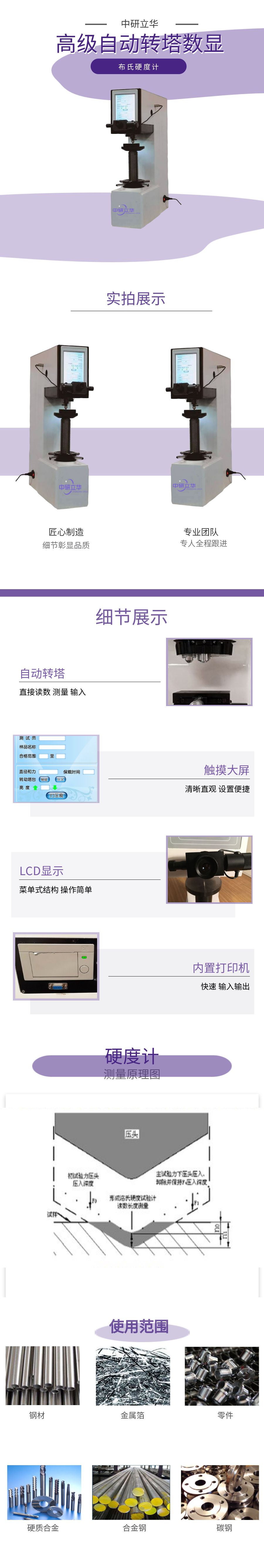 用途:主要用測(cè)定黑色金屬、有色金屬、未經(jīng)淬火鋼及質(zhì)地較軟材料及軸承合金材料的布氏硬度;應(yīng)用范圍廣,適合于平行平面的精密測(cè)量,測(cè)量穩(wěn)定可靠。