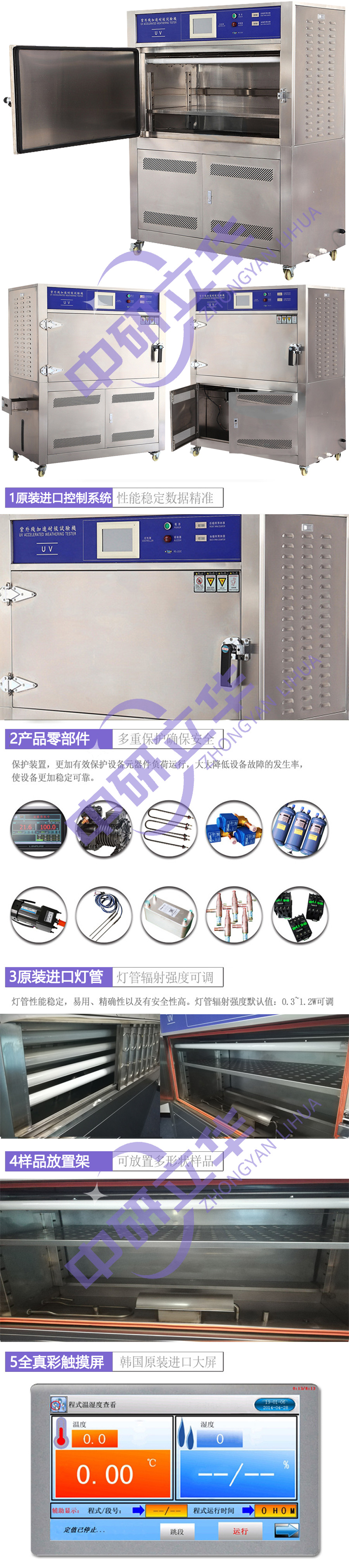 | 產(chǎn)品用途 | QUV紫外耐候老化試驗箱可以模擬由陽光、雨水和露水對材料造成的危害,UV利用熒光紫外燈模擬陽光照射的效果,利用冷凝濕氣雨水和露水。被測試材料放置于一定溫度下的光照和潮氣交替的循環(huán)程序中進(jìn)行測試。UV用數(shù)天或數(shù)周的測試,即可重現(xiàn)戶外數(shù)月至數(shù)年出現(xiàn)的危害。危害類型包括:褪色、變色、失光、粉化、裂痕、渾濁、泡化、脆化、強度衰退和氧化。 UV試驗箱數(shù)據(jù)可以幫助您選擇新材料,改進(jìn)現(xiàn)有材料,以及評估變化如何影響產(chǎn)品的耐久性。在材料置于戶外的變化趨勢上,UV試驗箱可以測出相關(guān)預(yù)測結(jié)果。 |